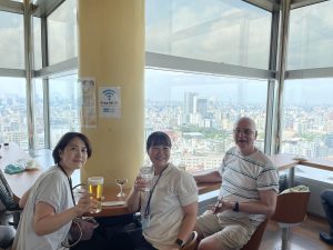 Since he was a beer lover Canadian, we went to Asahi Sky Room where at the top floor is famous beer company's head office.