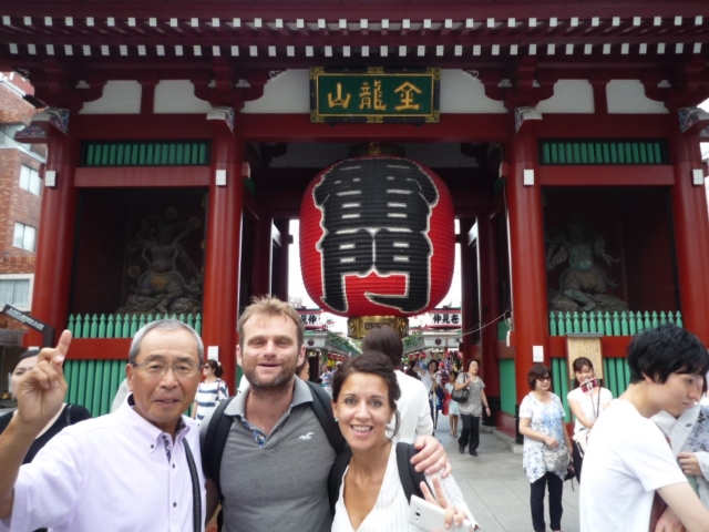 This is the main entrance to Sensoji temple called Kaminarimon (Thunder Gate) , one of the most popular touristic spots in Tokyo.